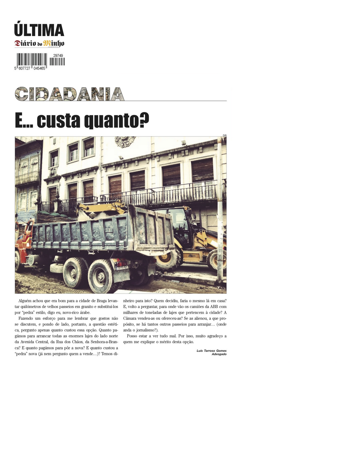 Chamamos a atenção para os textos publicados na coluna quinzenal Entre Aspas, no Diário do Minho, que mantêm no geral (e infelizmente) permanente atualidade e que refletem as várias vertentes da ação da ASPA nesta cidade, que foi já designada por Bracara Augusta e que tem desperdiçado vestígios da ocupação e construção do território dessa e de épocas posteriores, pois não os soube recuperar, valorizar e divulgar.